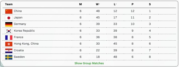 Η Κορέα απάντησε με τον Woojin JANG, που νίκησε τον Dang QIU με 3–0, μειώνοντας τη διαφορά. Αλλά ο QIU αντεπιτέθηκε στο Ανδρικό Διπλό μαζί με τον Benedikt DUDA, παίρνοντας μια αγχωτική απόφαση στο τελικό παιχνίδι.