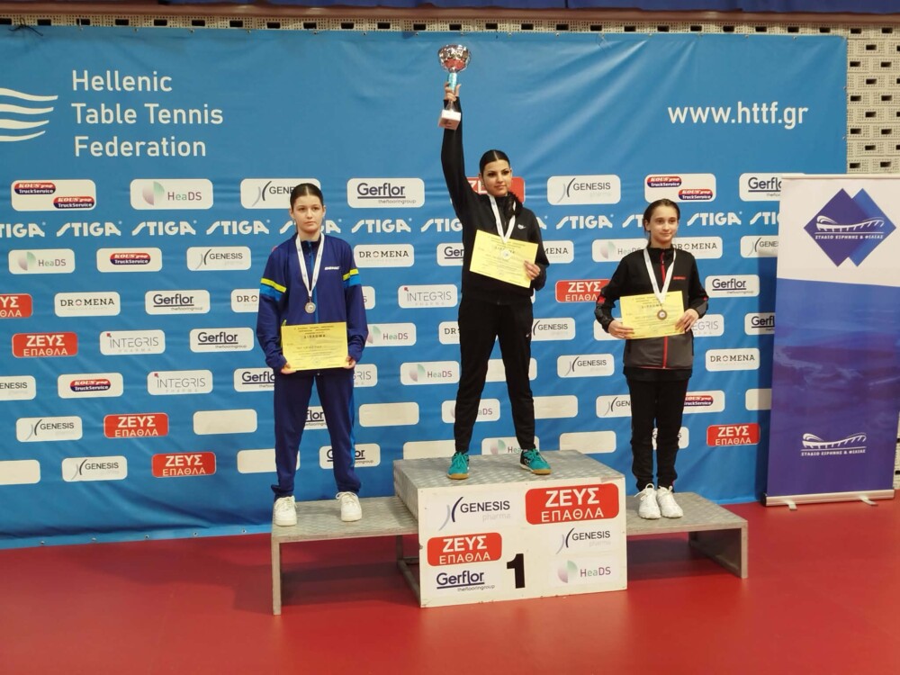 Στις κορασίδες η Αφροδίτη-Ιωάννα Σαρικάκη πανηγύρισε τον δεύτερο τίτλο της στα φετινά αναπτυξιακά. Στον αμφίρροπο τελικό λύγισε το 1ο φαβορί, την Ελπίδα Τασιού με 3-2 σετ (8-11, 11-8, 11-4, 6-11, 11-4). Νωρίτερα, στην 4άδα, είχε νικήσει επίσης στα πέντε σετ το 2ο φαβορί, την Κλειώ Μαδέση. Για τη Θεσσαλονικιά ήταν ο δεύτερος τελικός στη σεζόν.