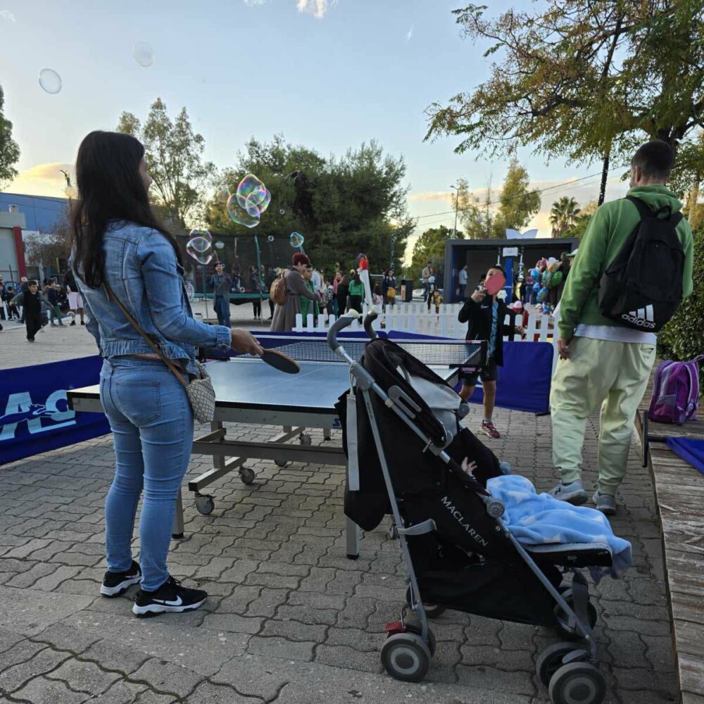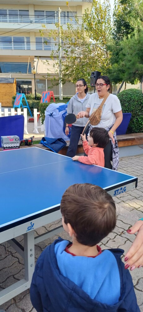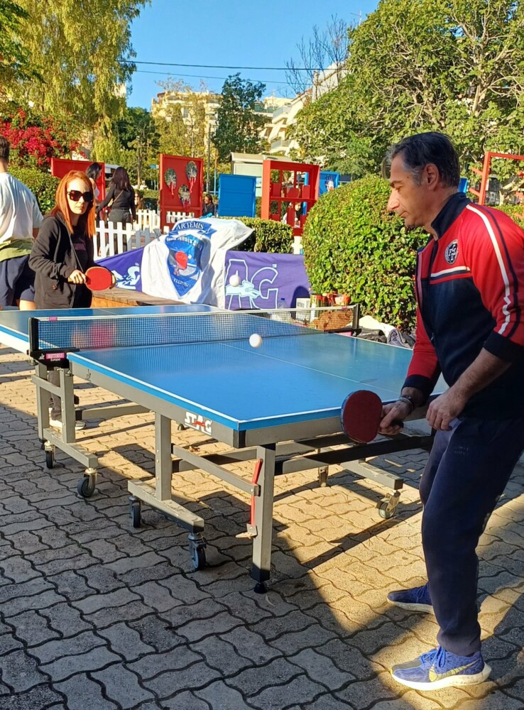 Αφιέρωσε τη μέρα στον αθλητισμό, έστησε δραστηριότητες από πολλά αθλήματα στην Πλατεία Σουρμένων και φυσικά συμπεριέλαβε την επιτραπέζια αντισφαίριση σε αυτά.