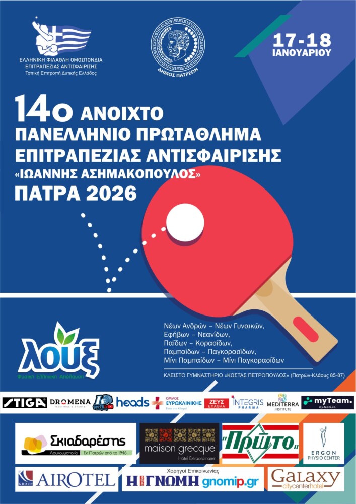 Η αχαϊκή πρωτεύουσα, που εδώ και δεκαετίες καλλιεργεί σε βάθος την επιτραπέζια αντισφαίριση, δείχνει ανέκαθεν και τη φροντίδα της στις αναπτυξιακές ηλικίες.