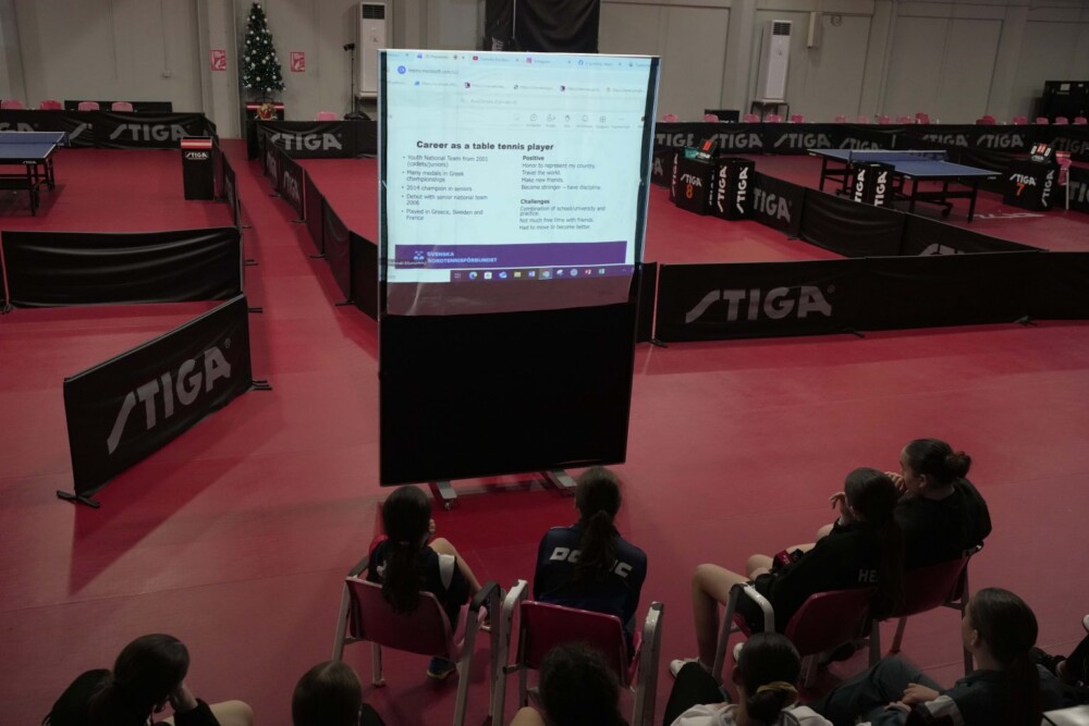 Η διαδικτυακή συνάντηση με τη Χριστοφοράκη έγινε ενδιάμεσα των προπονήσεων. Η ομοσπονδιακή προπονήτρια έκανε μία σύντομη αναφορά στην καριέρα της ως αθλήτρια, στη μετακίνησή της στη Σουηδία το 2016 και στα στάδια της προπονητικής διαδρομής της στη χώρα. Στάθηκε σε σημεία, που σχετίζονται με την προσπάθεια για πρόοδο, που κάνουν και οι 12 επίλεκτες Ελληνίδες του χριστουγεννιάτικου καμπ.