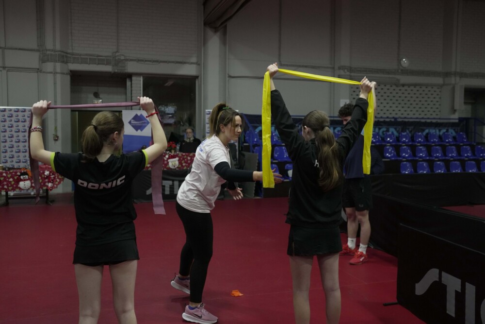 Υπό τους ήχους μουσικής έκανε στα παιδιά στρέτσινγκ και διάφορες ασκήσεις, που μέσω των αναπνοών, βοηθούν τους αθλητές στην ενδυνάμωση, στον ρυθμό και στη συγκέντρωση τόσο για τους αγώνες όσο και για τις προπονήσεις τους. Στο τέλος ευχήθηκε στις αθλήτριες «καλή αθλητική χρονιά χωρίς τραυματισμούς και με νίκες».