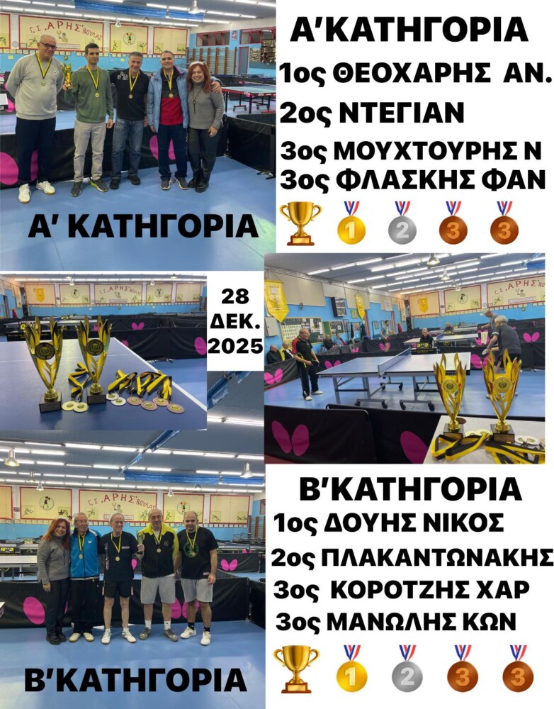 4ο Τουρνουά Άρης Βούλας Διπλά και Ατομικά 27 & 28/12/2025