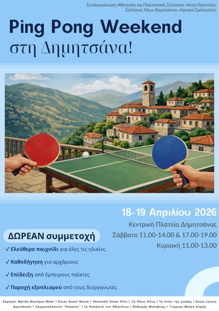 Ένα ξεχωριστό σαββατοκύριακο με πινγκ – πονγκ στην Δημητσάνα Αρκαδίας.