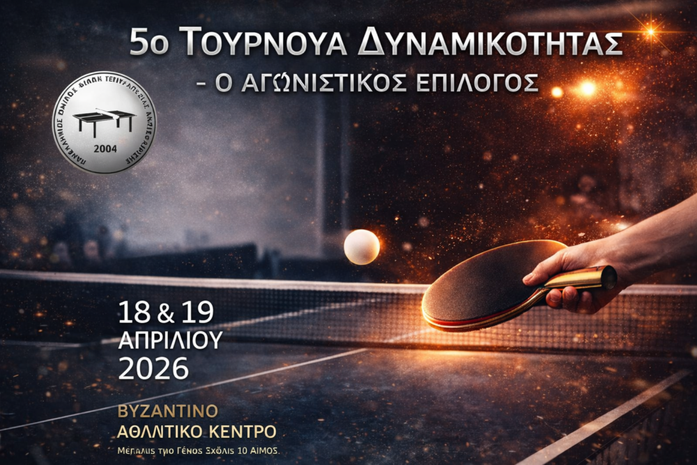 Το 5ο Αξιολογημένο Τουρνουά Δυναμικότητας (18–19 Απριλίου 2026) ολοκληρώθηκε με απόλυτη επιτυχία, αποτελώντας το ιδανικό κλείσιμο της αγωνιστικής σεζόν. Με συμμετοχή που έφτασε τους 150 αθλητές, η διοργάνωση επιβεβαίωσε τη δυναμική και τη συνεχή ανάπτυξη του χώρου της επιτραπέζιας αντισφαίρισης.