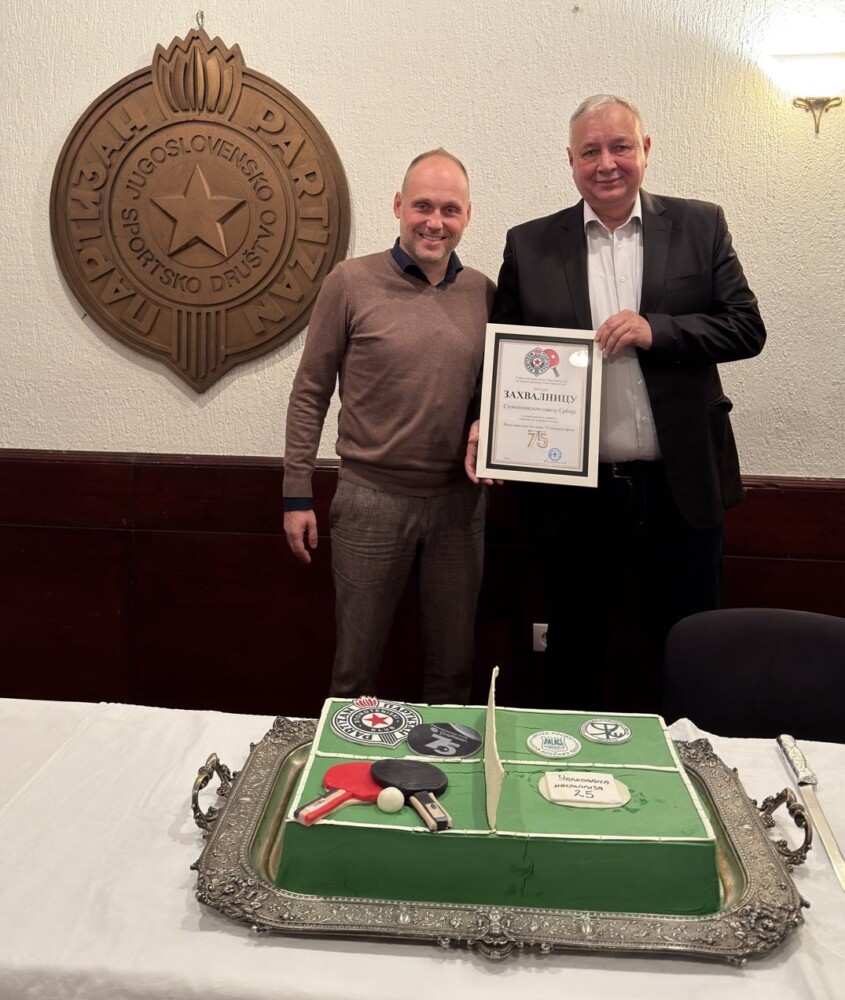 Εκ μέρους του STS, ο πρόεδρος κ. Predrag Ničić παρέλαβε την αναμνηστική πλακέτα από τον πρόεδρο της Παρτιζάν, κ. Bojan Milošević, σε κλίμα συγκίνησης και σεβασμού για την πορεία του συλλόγου.