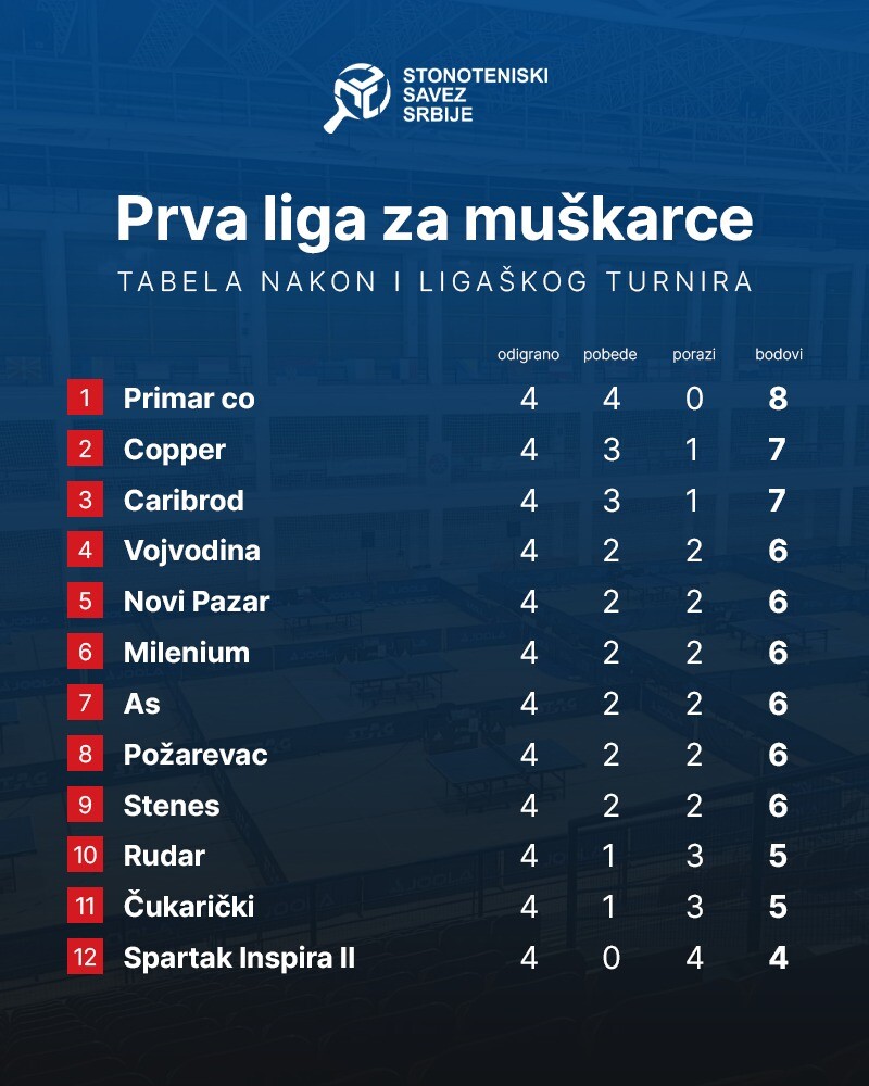Η Primar Co είναι η μόνη αήττητη ομάδα της πρώτης κατηγορίας, οι Borski Copper και Caribrod από την Ντιμίτροφγκραντ έχουν επίσης θετικό σκορ, ενώ ακόμα και έξι ομάδες μοιράζονται τον ίδιο αριθμό βαθμών με 2:2 η καθεμία.