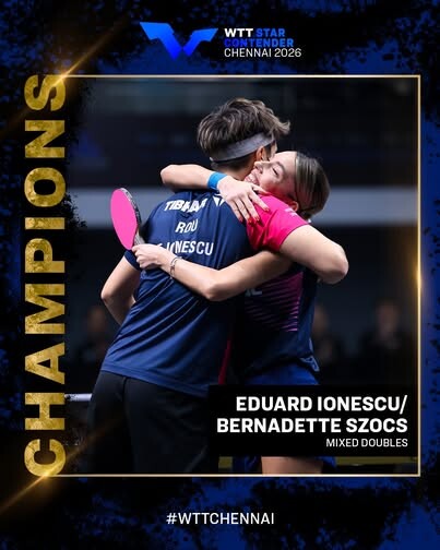 Για πρώτη φορά ως δίδυμο, οι Eduard Ionescu και Bernadette Szocs κατέκτησαν έναν τίτλο της σειράς WTT, νικώντας τους Harmeet Desai και Yashaswini Ghorpade για τον τίτλο του Μικτού Διπλού στο WTT Star Contender Chennai 2026 (11-9, 11-2, 11-8).