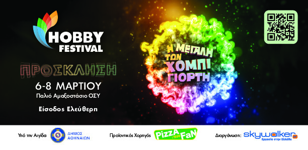 - Το 10ο Hobby Festival λειτουργεί από τις 10:00 έως τις 23:00. Ωστόσο, την Παρασκευή 6 Μαρτίου θα φιλοξενήσουμε πολλούς μαθητές που θα επισκεφθούν το Φεστιβάλ στο πλαίσιο σχολικής εκδρομής.