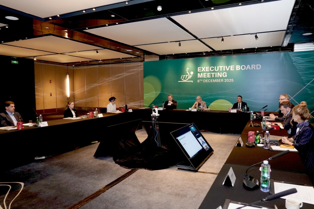 Το Εκτελεστικό Συμβούλιο της Διεθνούς Ομοσπονδίας Επιτραπέζιας Αντισφαίρισης (ITTF) πραγματοποίησε συνεδρίαση σήμερα, 8 Δεκεμβρίου 2025, στο Τσενγκντού, Κίνα, με την ευκαιρία της επιτυχημένης διεξαγωγής του ITTF Mixed Team World Cup.