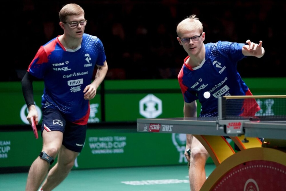 Έπειτα ενώθηκε με τον αδελφό του Alexis και στο Ανδρικό Διπλό συνέχισαν να τιμωρούν την Ιαπωνία. Για άλλη μια φορά ο Harimoto δυσκολεύτηκε, με τους Lebrun να παρουσιάζουν masterclass επιθετικότητας από μέση απόσταση. Ο Harimoto φάνηκε χωρίς αυτοπεποίθηση υπό τον αμείλικτο ρυθμό. Οι Lebrun κέρδισαν 3–0, δίνοντας στη Γαλλία προβάδισμα 7–5.