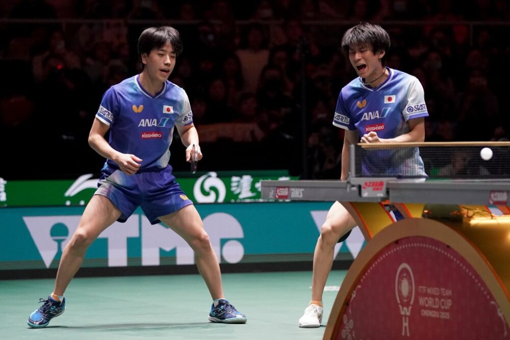 Η Γαλλία ξεκίνησε με τον χειρότερο τρόπο. Το Μικτό Διπλό ήταν μονόπλευρο, καθώς οι Mima Ito και Hiroto Shinozuka διέλυσαν τους Alexis Lebrun και Jia Nan Yuan. Αφού κέρδισαν οριακά το πρώτο παιχνίδι 13–11, κυριάρχησαν με 11–4 στο δεύτερο και έδωσαν το πρώτο “donut” του τουρνουά με 11–0 στο τρίτο.
