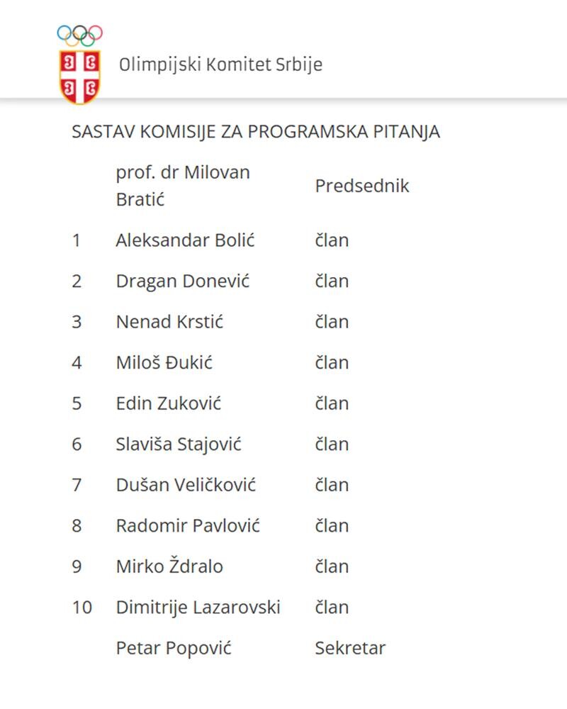 Ο ομοσπονδιακός προπονητής της εθνικής ομάδας ανδρών, Miloš Đukić, εξελέγη μέλος της Επιτροπής Προγραμμάτων της Olympic Committee of Serbia, με πρόεδρο τον καθηγητή δρ Milovan Bratić.