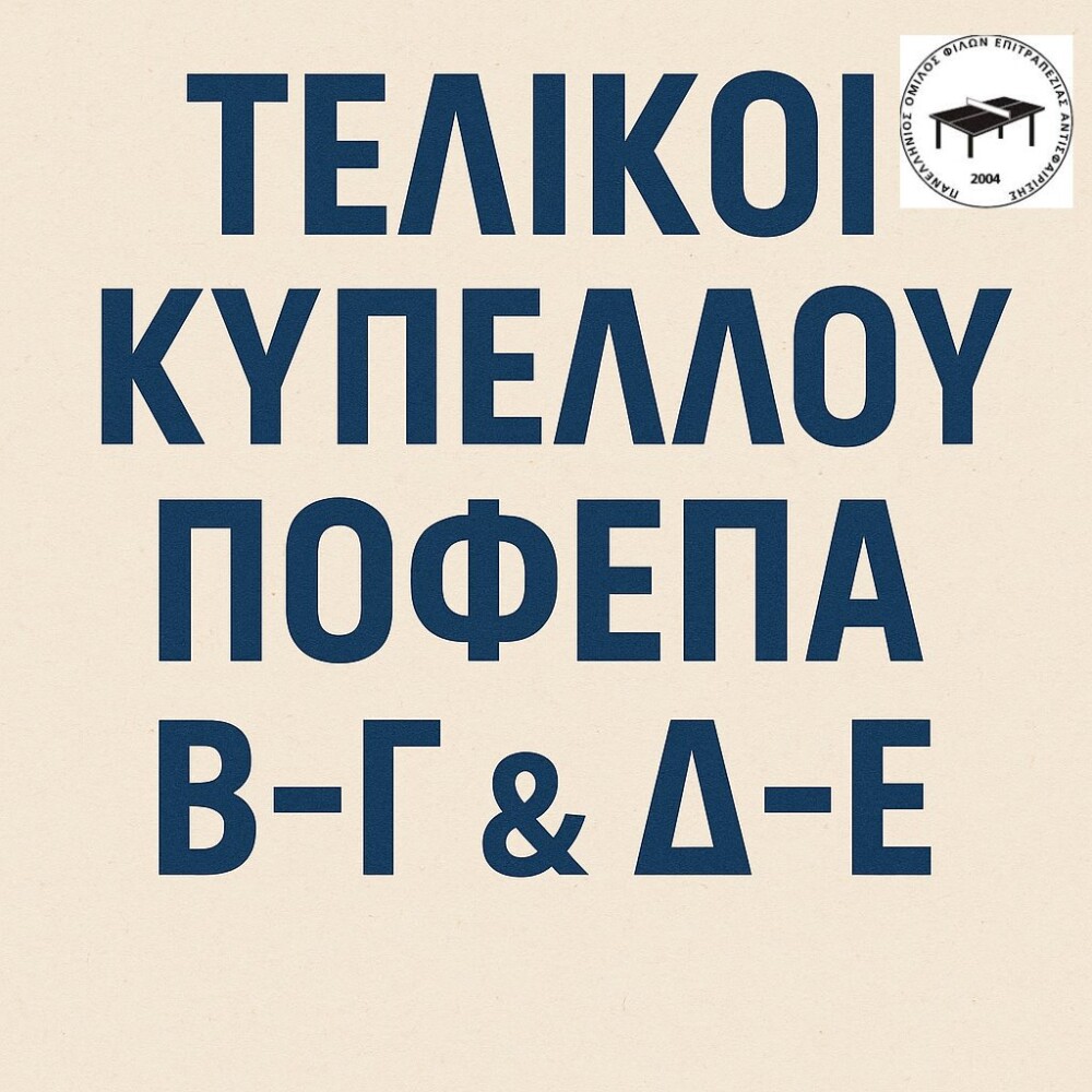 Π.Ο.Φ.ΕΠ.Α.: Ανακοίνωση για τους Τελικούς Κυπέλλου “Β–Γ & Δ–Ε” Κατηγορίας