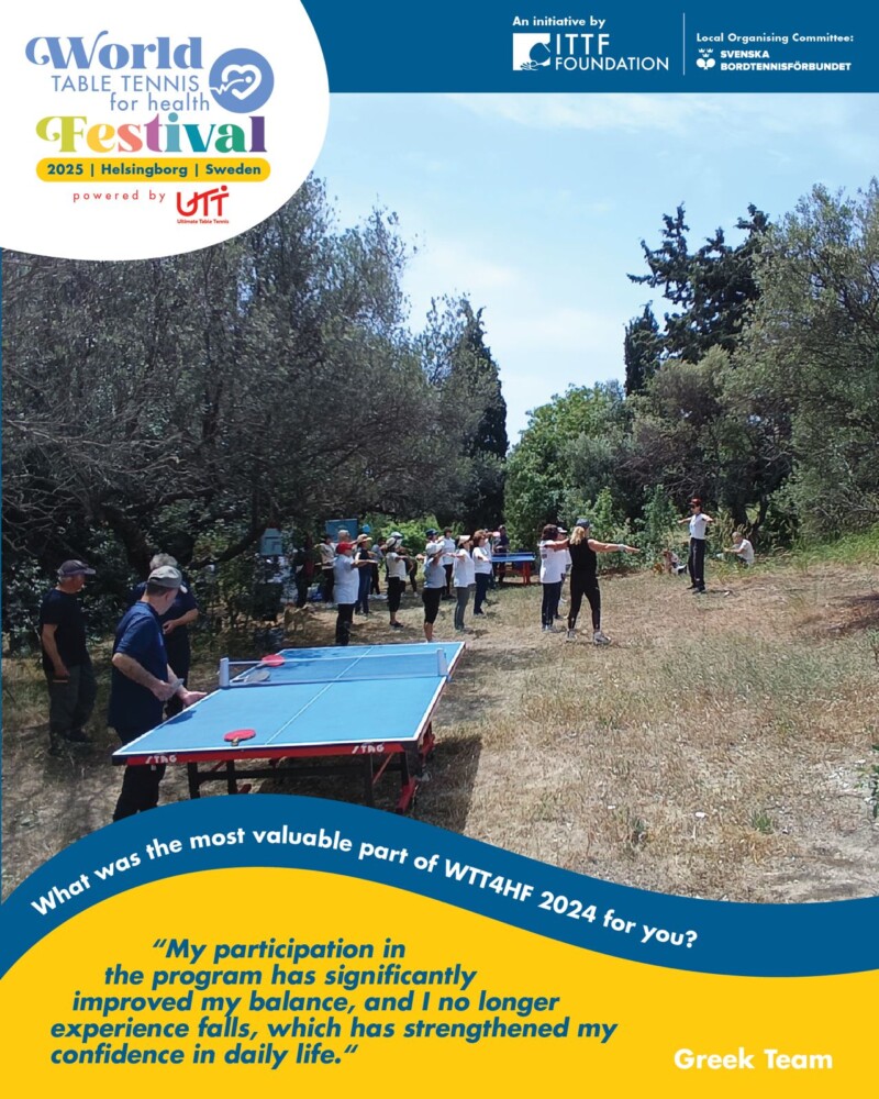 Συνολικά οκτώ μέλη της ομάδας θα ταξιδέψουν προς τον βορρά για να συμμετάσχουν στο φετινό #WorldTableTennisForHealthFestival, όπου ανυπομονούν να λάβουν μέρος σε ειδικές δραστηριότητες σχετικές με το Αλτσχάιμερ και να ζήσουν μια ενθουσιώδη και δεμένη ατμόσφαιρα, όπως στο WTT4HF 2024 στη Γαλλία.
