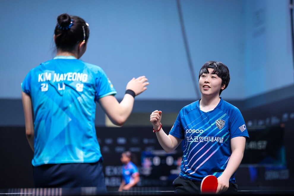 Ένας από τους πρώτους αγώνες της ημέρας είδε το Νο.1 φαβορί Ryu Hanna και Kim Nayeong να αποφεύγει οριακά τον αποκλεισμό, περνώντας δύσκολα απέναντι στα αγαπημένα του κοινού Sutirtha Mukherjee και Ayhika Mukherjee σε πέντε σετ (11-4, 3-11, 6-11, 11-6, 11-8).