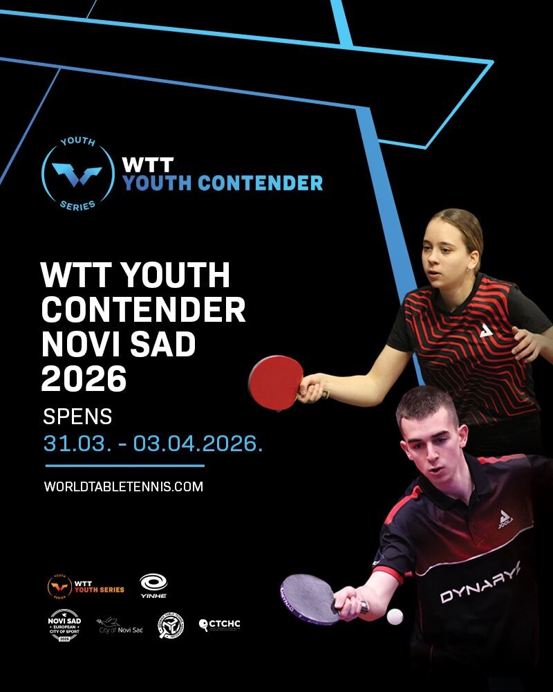Στο διάστημα από 31 Μαρτίου έως 3 Απριλίου, η Ομοσπονδία Επιτραπέζιας Αντισφαίρισης της Σερβίας φιλοξενεί το τουρνουά WTT Youth Contender Novi Sad 2026, το οποίο θα πραγματοποιηθεί στη μεγάλη αίθουσα του SPENS στο Νόβι Σαντ.