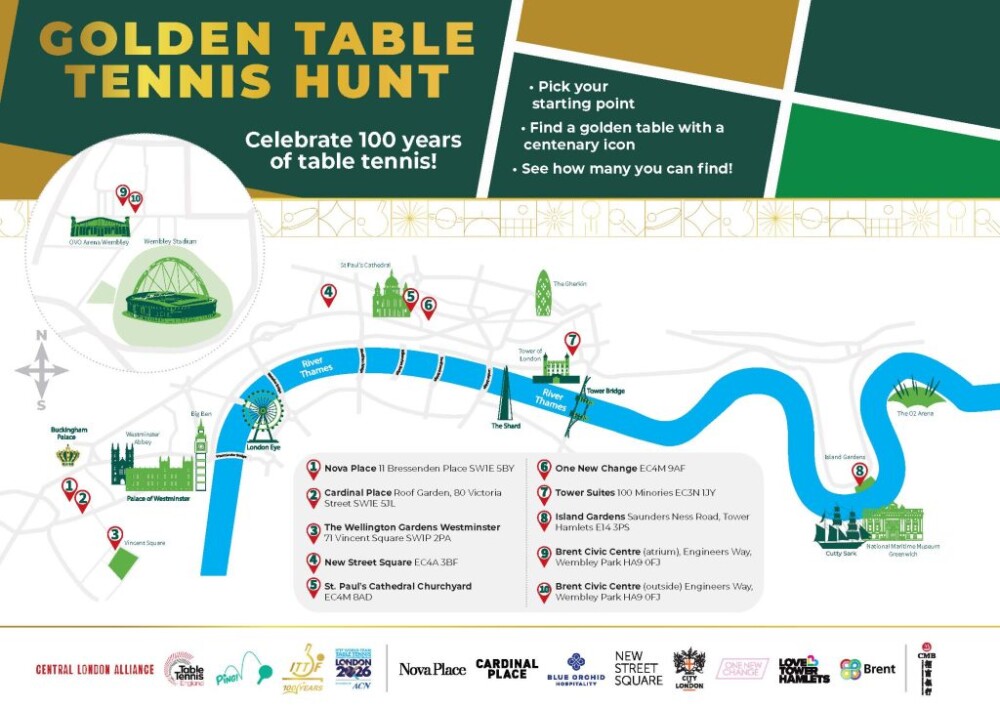 Το κοινό ενθαρρύνεται να κατεβάσει τον επίσημο χάρτη, διαθέσιμο μέσω των καναλιών της Central London Alliance, του London Sports Festival και της Table Tennis England, ώστε να εντοπίσει και τα δέκα τραπέζια και να ανακαλύψει το πλήρες σετ εικονογραμμάτων.