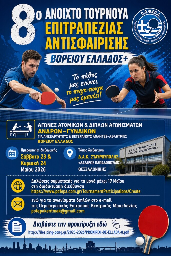 “8ο Ανοιχτό Τουρνουά Επιτραπέζιας Αντισφαίρισης Βορείου Ελλάδος